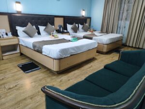 Quad Shearing Super Deluxe Room with Balcony – Perfect for Your Loved Ones! Experience comfort and togetherness in our spacious Quad Sharing Room featuring a private balcony.